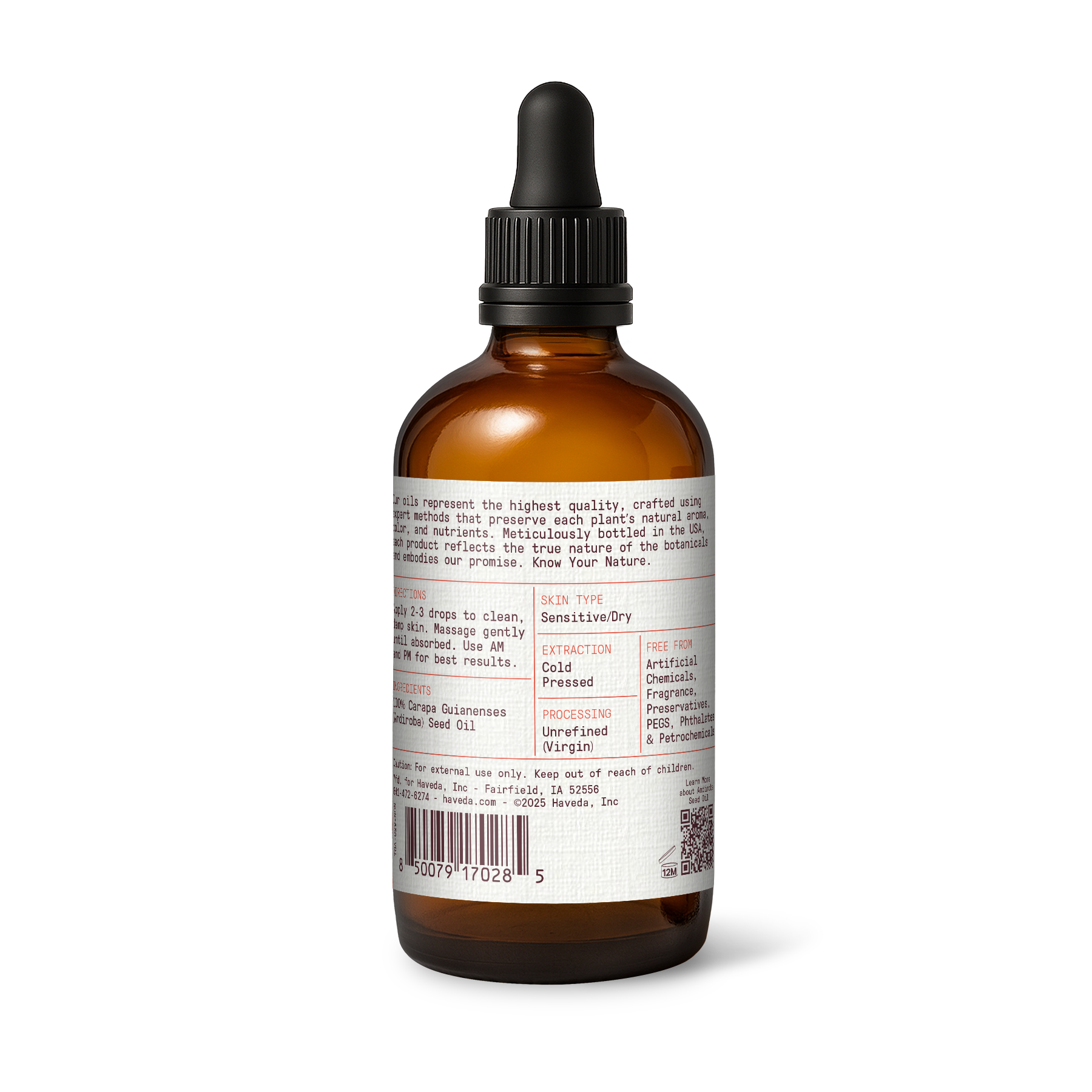 About Andiroba Seed Oil: Our 100% pure speciality seed oil is bottled in the USA and rich in nutrients to calm sensitive skin. It’s also free from artificial chemicals, fragrance, preservatives, PEGS, phthalates & petrochemicals.